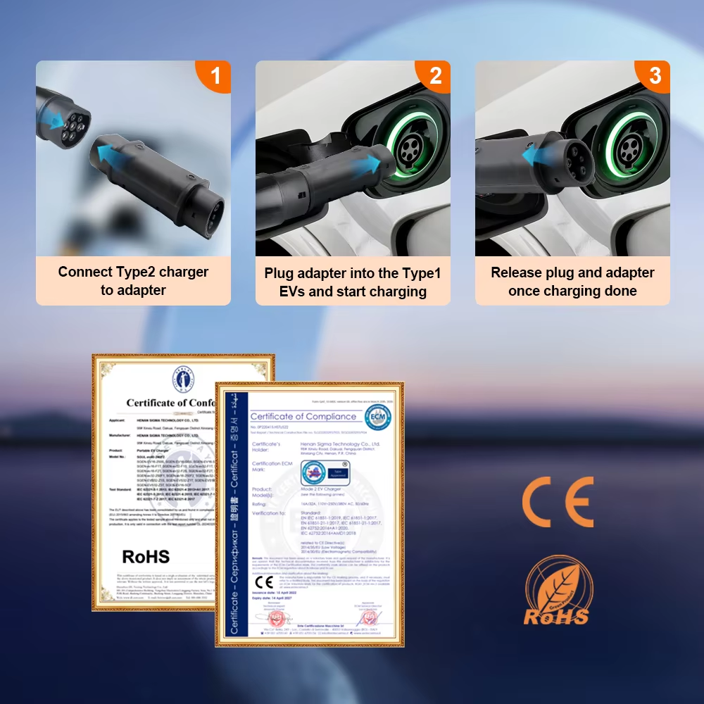 Usage: Use to charge US/Korean cars from Type 2 charging stations.