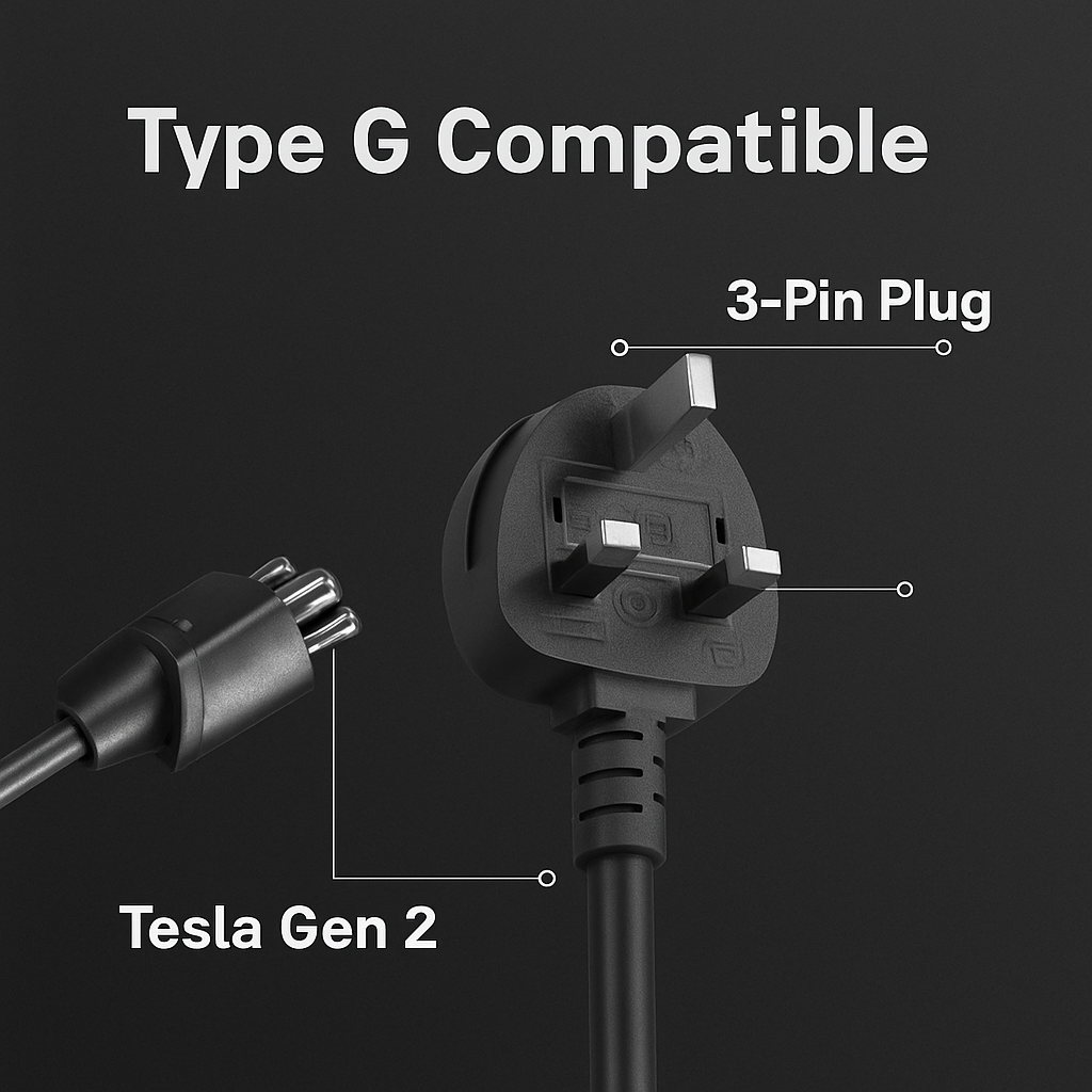 Tesla Charger Adapter for UAE Socket Outlets | UK Adapter 3-Pin Plug | United Kingdom Adapter Type G